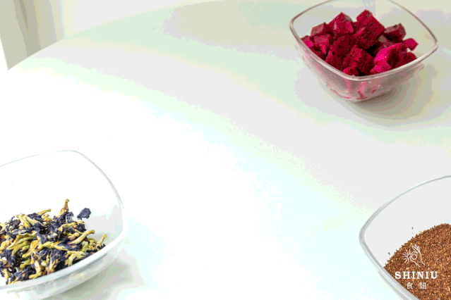 没想到,“星空”和“桃花”也能碰撞出绝妙的cp感,超美。【蓝色】是用蝶豆花染成的,【红色】是用红心火龙果染成的,天然无色素。