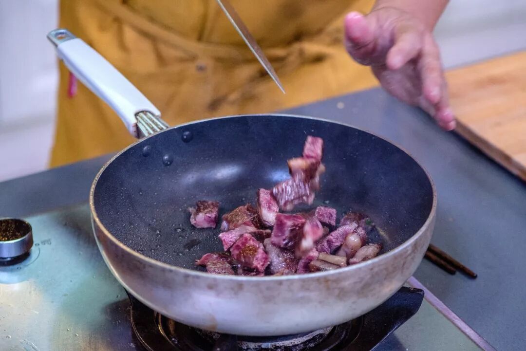 牛小排煎好后再炒,可以让牛肉更酥脆。
