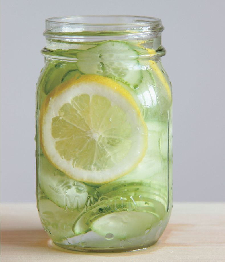将柠檬、黄瓜洗净切薄片,浸泡在纯净水/苏打水中,密封冷藏4小时即可饮用。