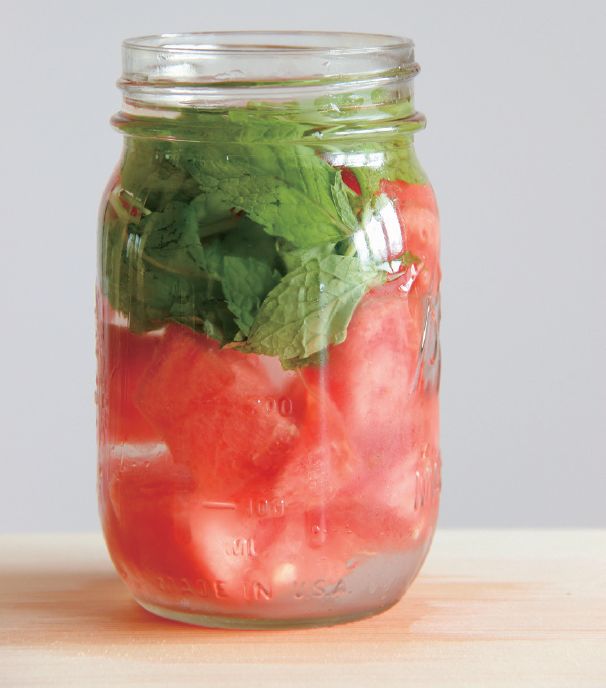 西瓜切块,薄荷洗净去根。将西瓜块、薄荷浸泡在纯净水/苏打水中,密封冷藏 4 小时即可饮用。