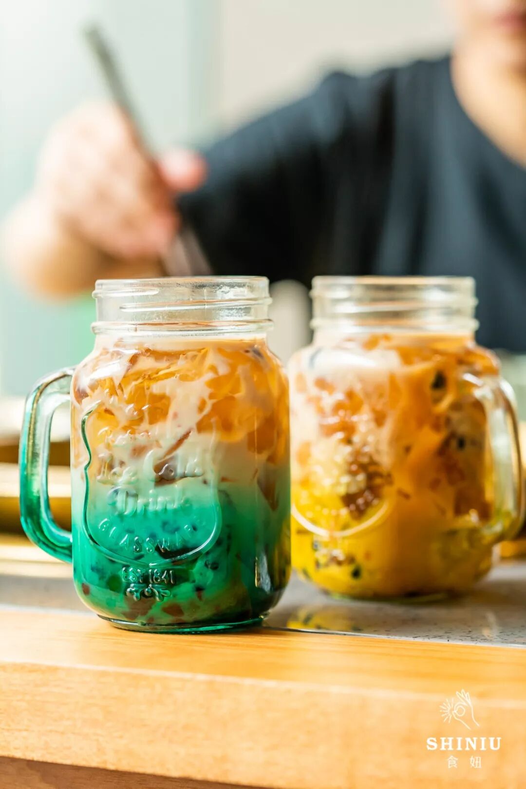 这么大一锅七彩冰粉奶茶,四五个人喝都够~