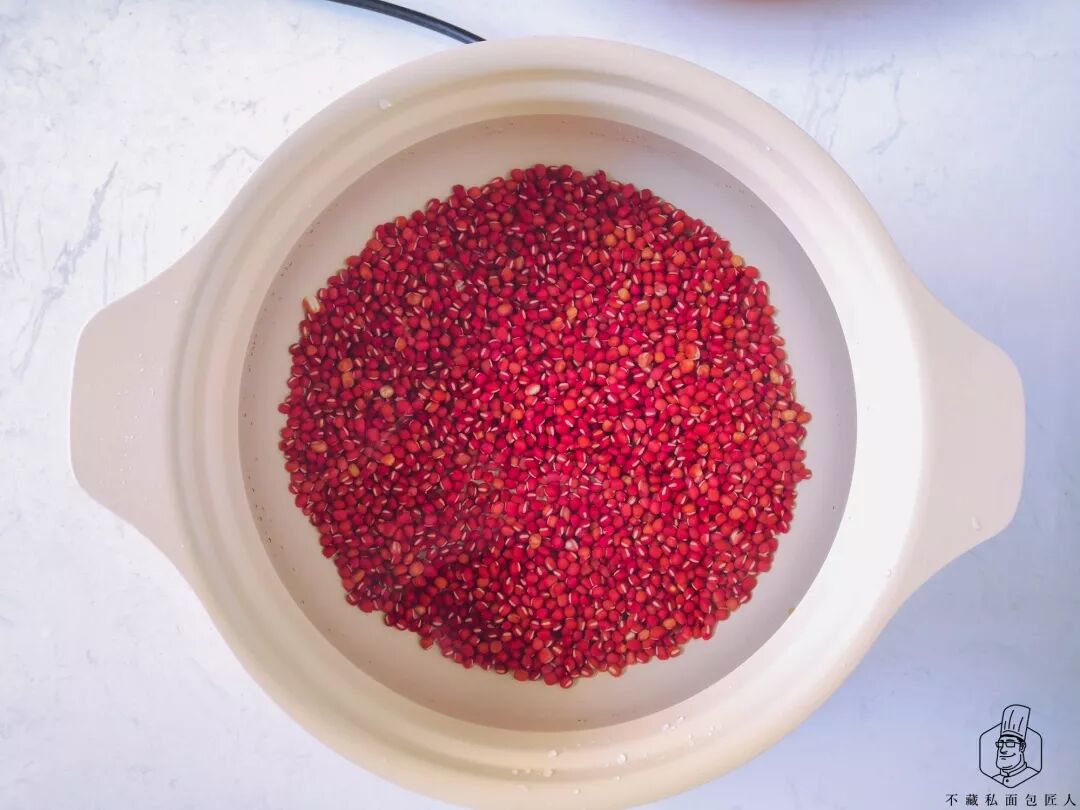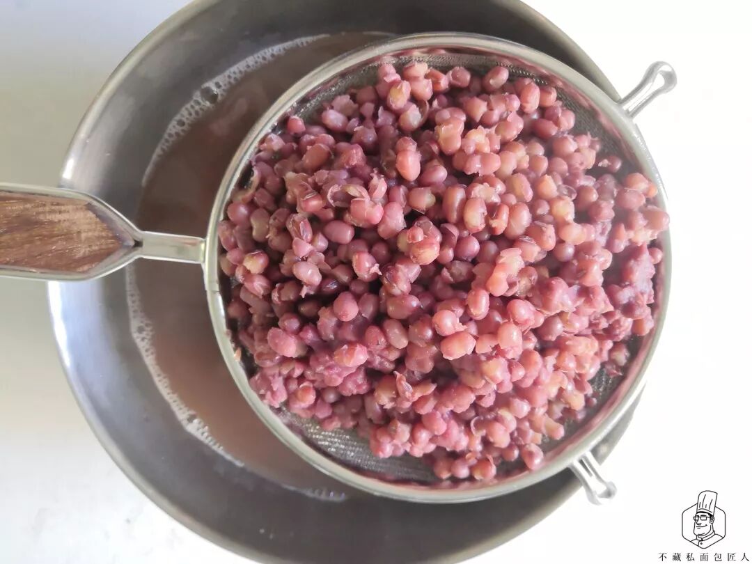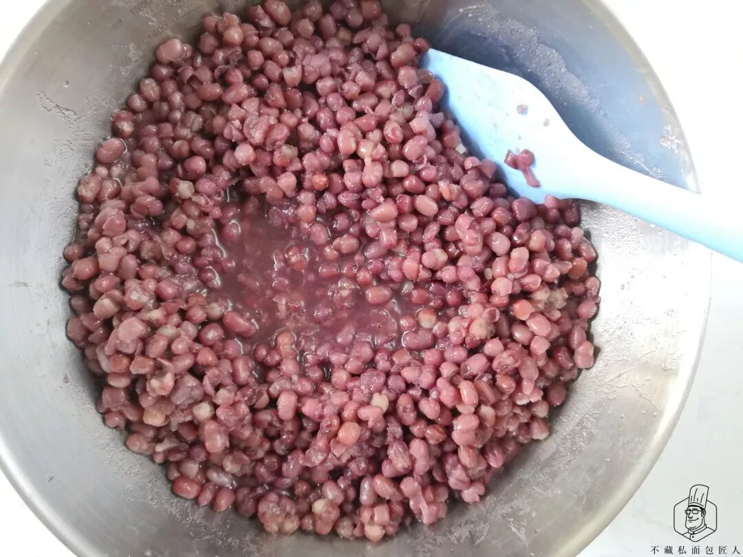 4、蜜红豆要提前制作,彻底晾凉才能使用,方子的量可以制作1000g左右蜜红豆馅,用不完冰箱冷藏。