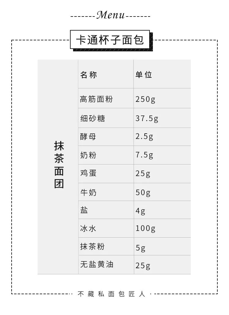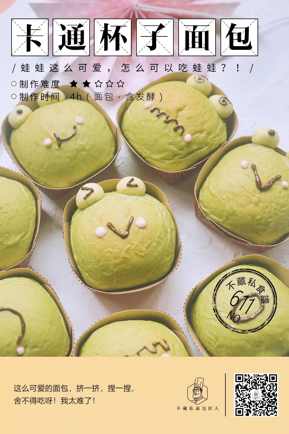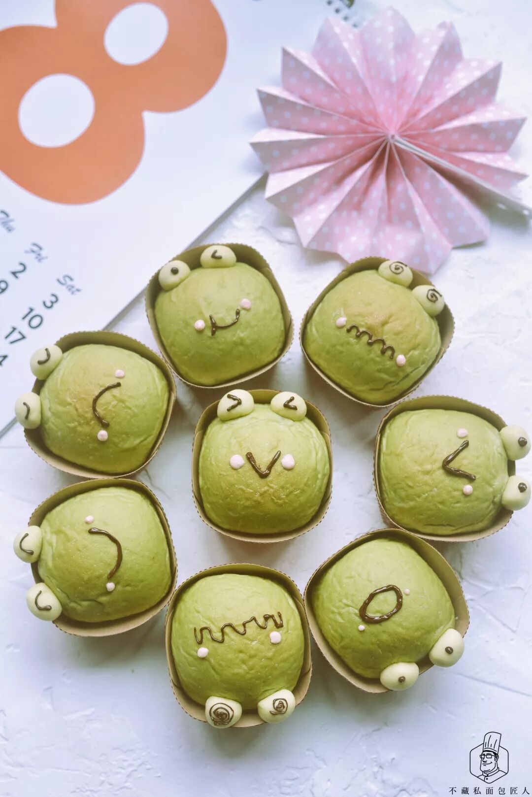 我觉得花样繁多的造型里,小青蛙的造型较为简单。So~本期来教大家做小青蛙的纸杯挤挤面包吧~面包食材中用到了抹茶粉,作为面团的整体颜色效果,没有的小伙伴可以用菠菜汁代替,效果也是不错滴!