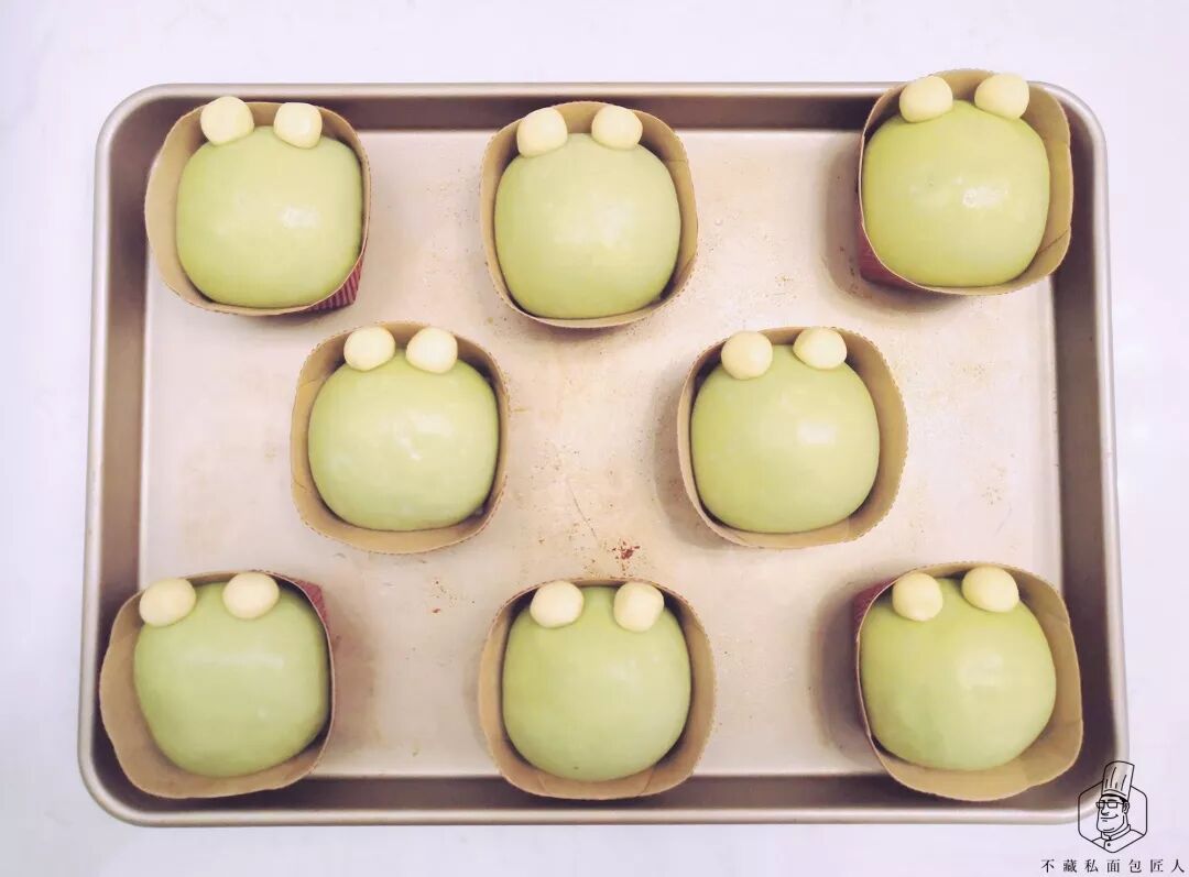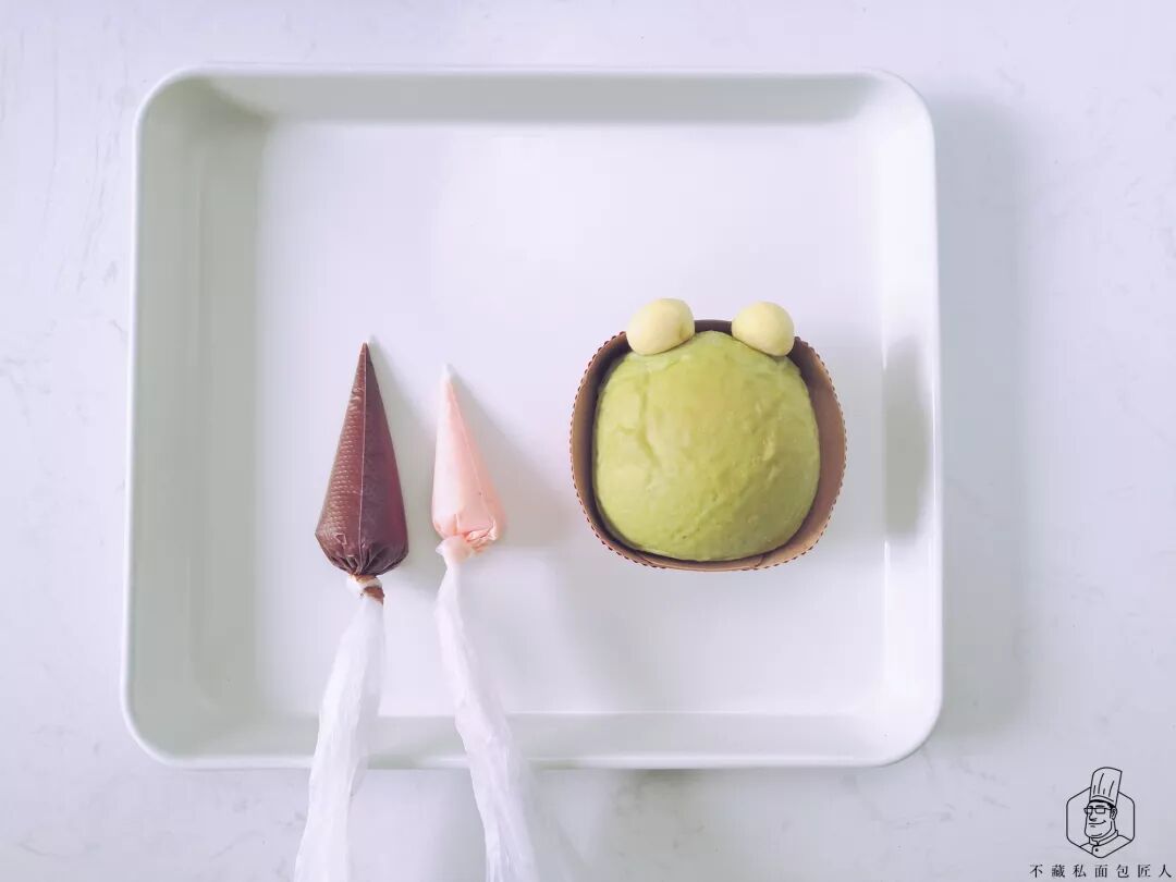 3、青蛙的眼睛不宜过大,组装时,尽量把眼睛往模具里面压一压,防止烘烤时身体膨胀把眼睛顶出来。