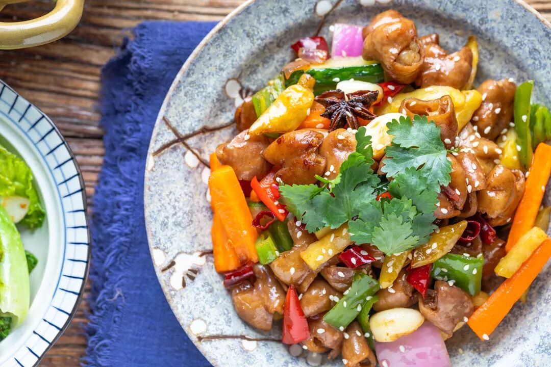17. 下入各种煎好的配菜。