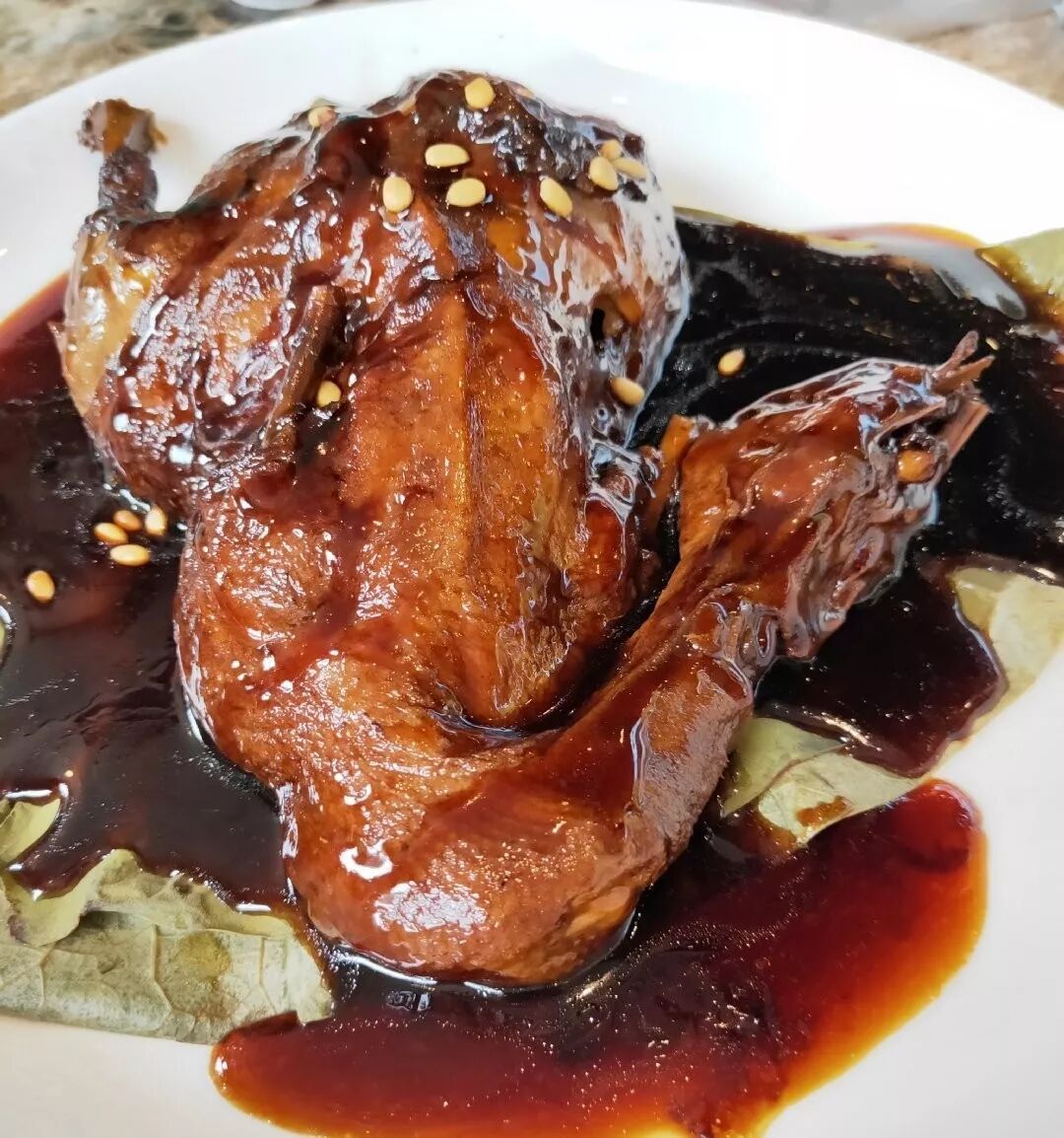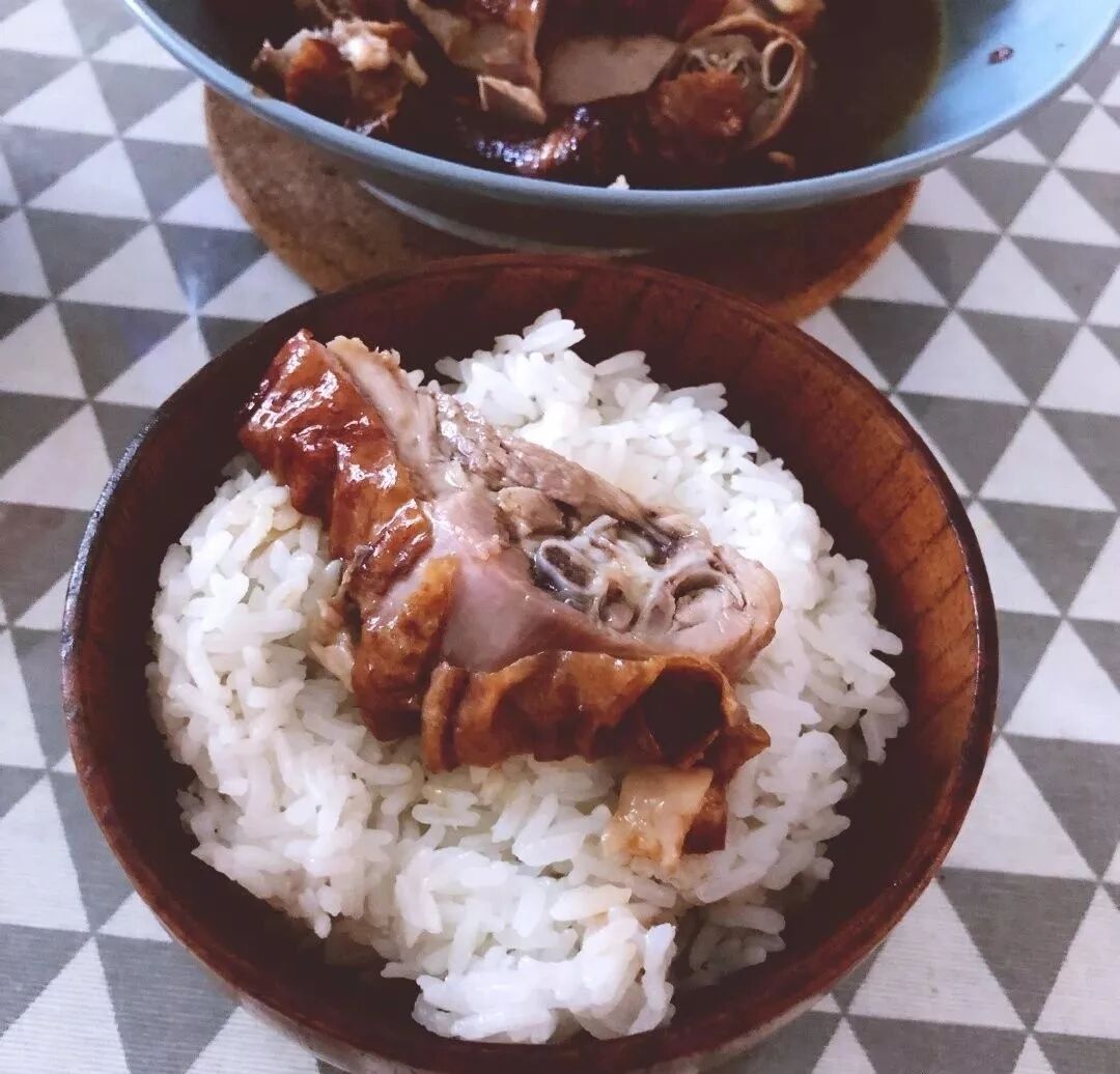 肉汁、鸭油和卤汁混在一起,皮酥肉嫩。嘬完最后一丝鸭肉,剩下的汤汁拿来拌饭,妈耶!浓油赤酱裹着晶莹的米粒,简直不要太诱人~