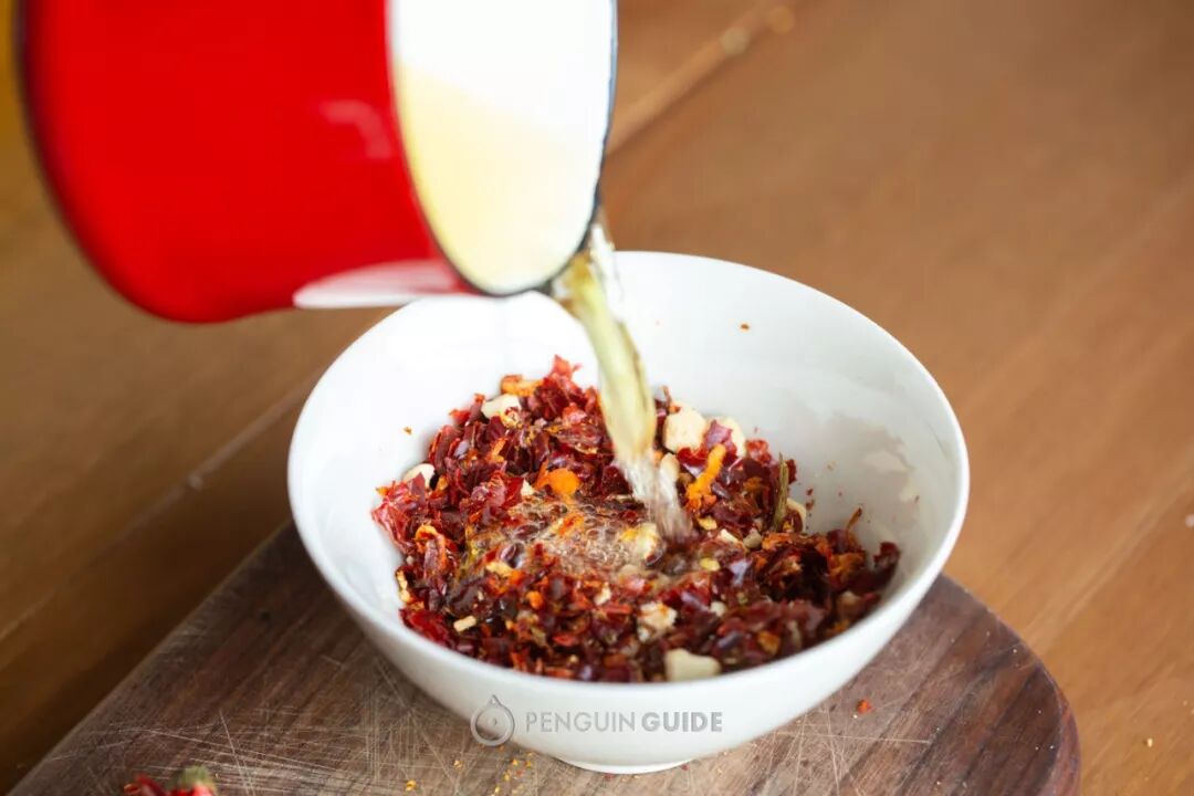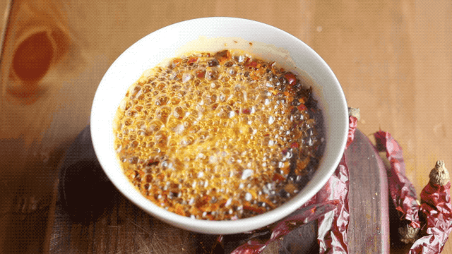 - 大家好,我是泡泡,编辑部最爱研究菜谱的人,经常琢磨一些不太费力就能把菜做好吃的小tips。 最近,我学了一个只要三步,把一切凉拌菜都变好吃的秘方: 川菜之魂,红油! 原教旨主义的红油做法,有很多讲