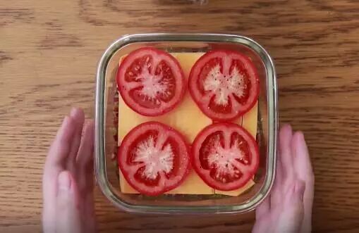 - 超美味的【番茄肉盒】微波炉5分钟就能做