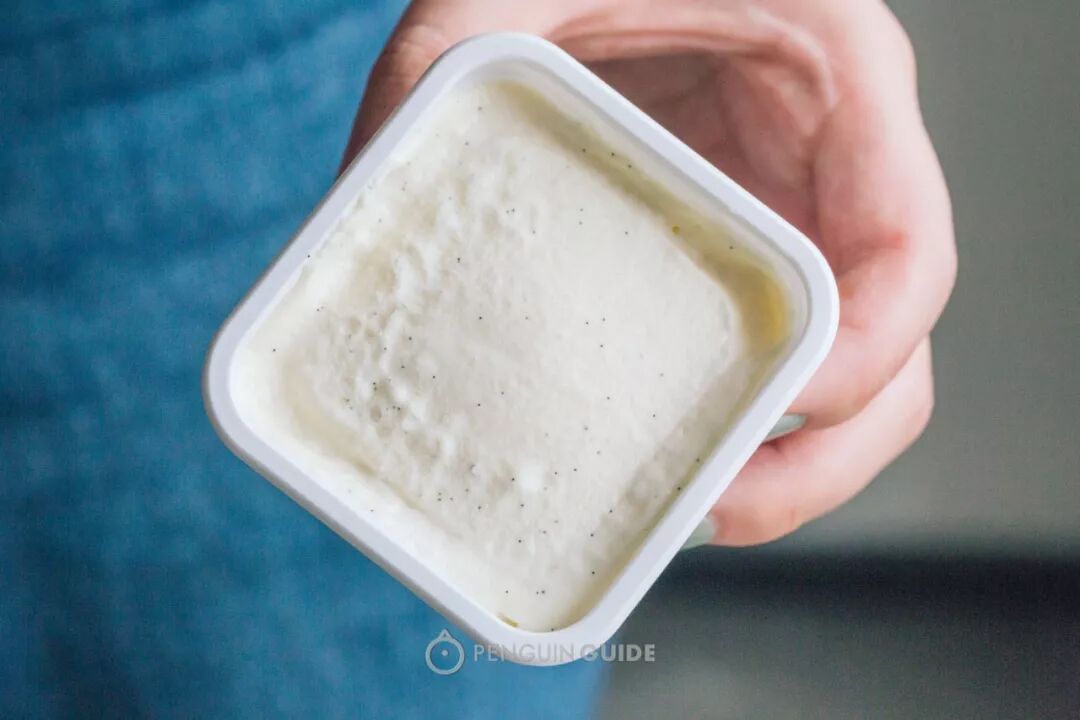 用的是马达加斯加的波本香草籽,非常纯正、过口难忘的香草味。牛奶来自阿尔卑斯的中小牧场,口感顺滑出色,像是在吃优质酸奶一样的标准质地。