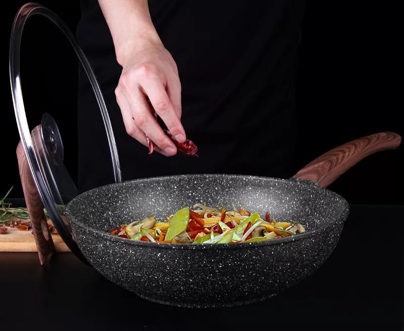 Joyclad的这款麦饭石炒锅,选用了德国进口的高端C3麦饭石,它富含各种矿物元素,不粘性能提升80%,做什么都非常顺畅。