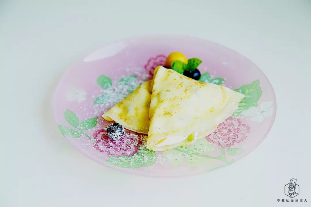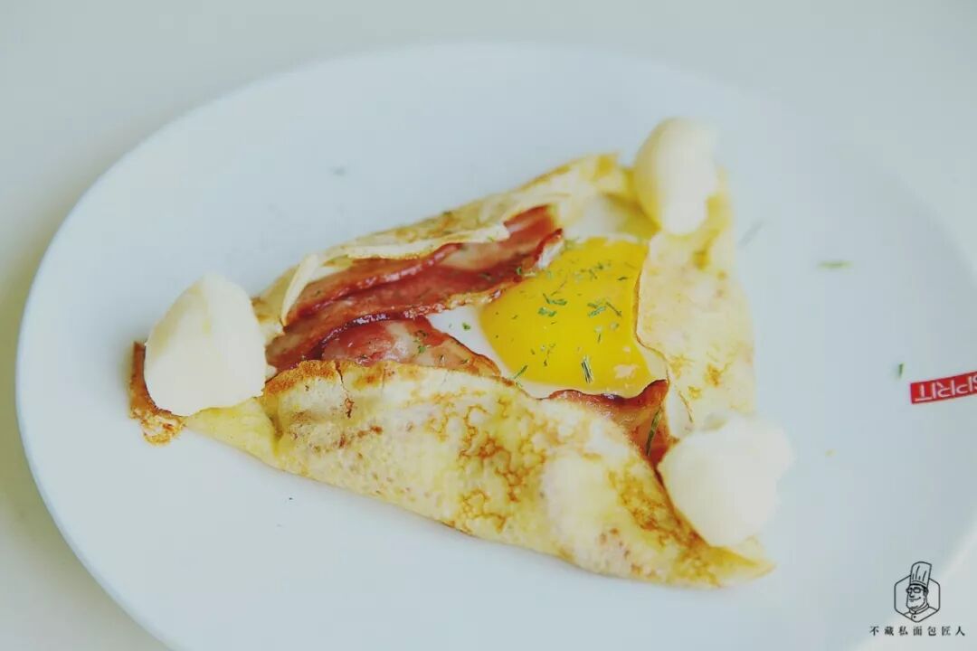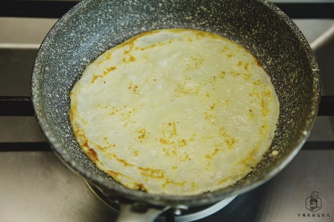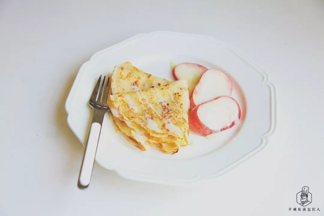 可丽饼当做早餐时,制作上和做千层蛋糕时还是有些区别的,需要烙出一些纹理,不要一点颜色都没有,有纹理的更好看好吃。可丽饼也是可甜可咸的,既可以配奶油水果也可以和培根鸡蛋做搭配,变化非常多,连吃一周都可以不重样!