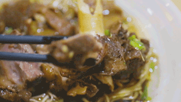 根据你的回答,他的剪刀上下翻飞,神速剪好你要的羊肉,放进小碗,加上蒜苗和姜粒,浇上肉汤,然后倒进煮好的面里,你就端走慢慢享用吧。