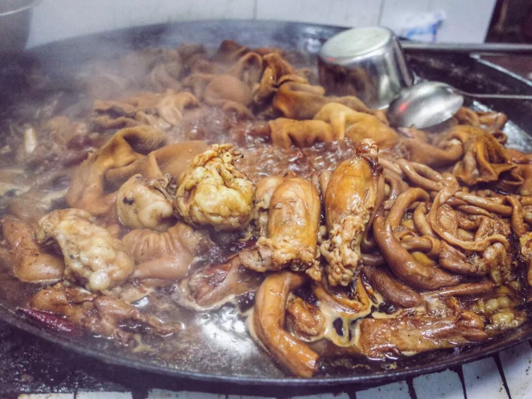 红烧羊肉是桐乡人酒席和宴请的必备硬菜,在桐乡,“咬强”就是美味羊肉的代名词。他家羊肉的味道,是小锅炖不出来的。咬强的卷帘门一年只开关一次,年三十歇业,年初十重新开张。一年只休息10天,其他日子,天天生意火爆。
