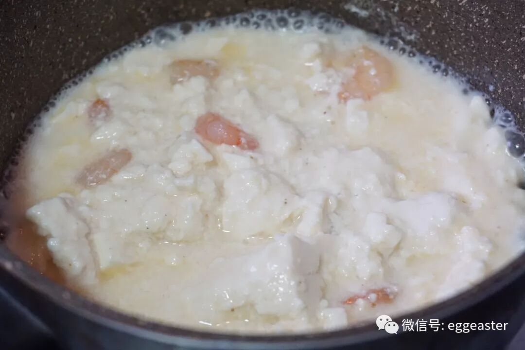捣碎之后撒一撮盐,2-3汤匙清水,烧开就行。调味不用那么复杂,豆腐可以生吃,虾仁本身熟得快又煎过,不用太久就可以出锅。