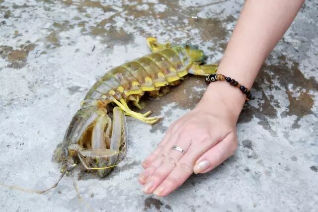 放在饮料瓶中超大只的斑琴虾蛄 | wordpress.com