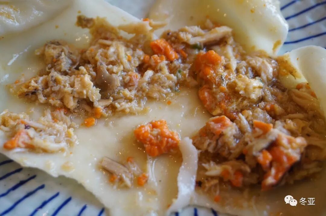 然后馅料,要少用猪肉,一点煮汤的鸡碎肉