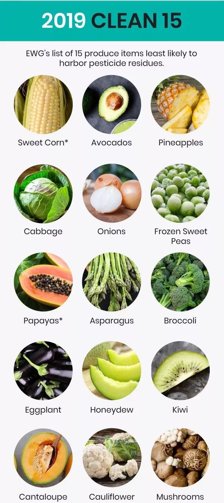 除了以上让我们糟心的蔬果外,EWG每年也会列出名为 Clean Fifteen 的排名榜,包括15款几乎测不到农药残留的蔬果,绝对可以安心多吃!以下是关于它们的一些亮点哦: