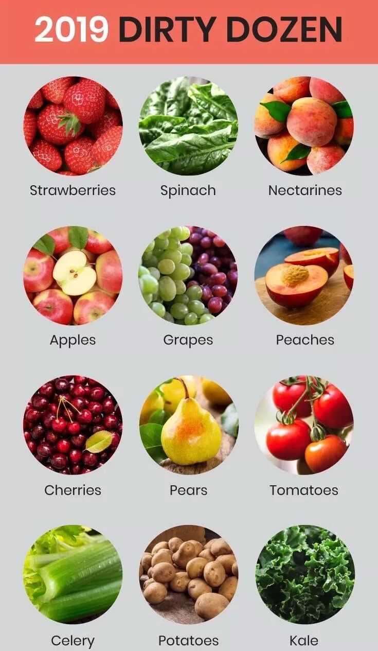 在环境工作组(简称EWG)的官网上看见了他们新发布的,2019年Dirty Dozen食物清单,其中列出了受农药污染最严重的12种水果和蔬菜。