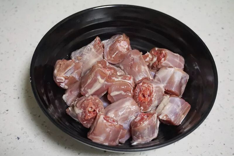 3. 坐热油锅,放入少许食用油,先爆香香料,葱段姜片,炒出香味后放入鸭脖,加入1大勺的白酒,炒至鸭脖变色。