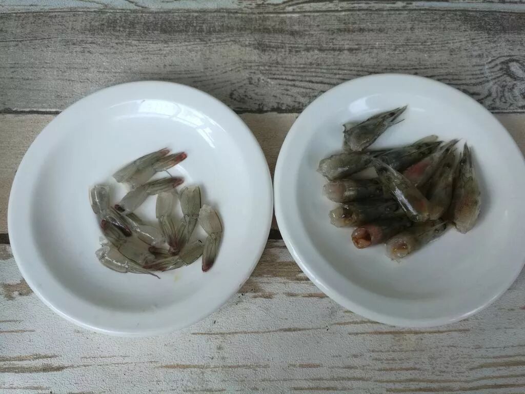 1. 准备食材,鲜虾清洗干净,剥去虾壳,去掉头尾,留作他用。