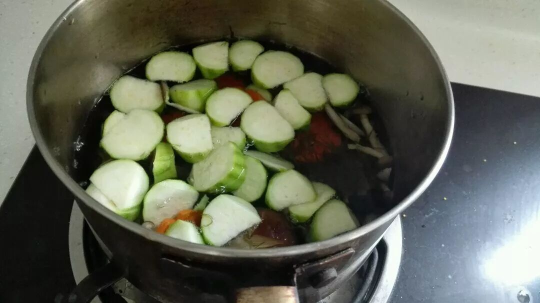 4. 加入丝瓜继续煮沸1分钟左右,丝瓜变软后调入少许盐调味即可,清甜爽口的真好喝。