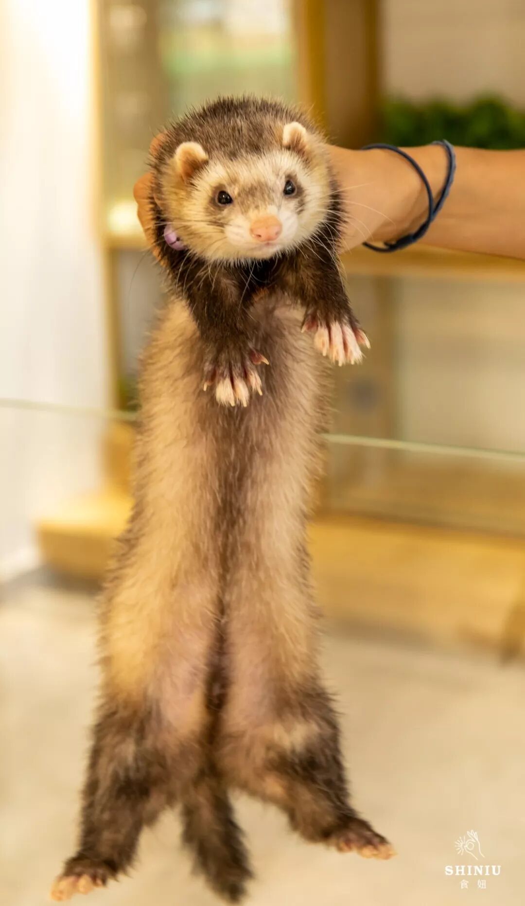 被人捏住命运的后颈皮还能如此淡定的安德鲁貂,不愧是这里唯一穿得起貂毛大衣的“有钱兽”。看它睡觉的时候缩成小小一团,没想到一拎起来能拉这么长。