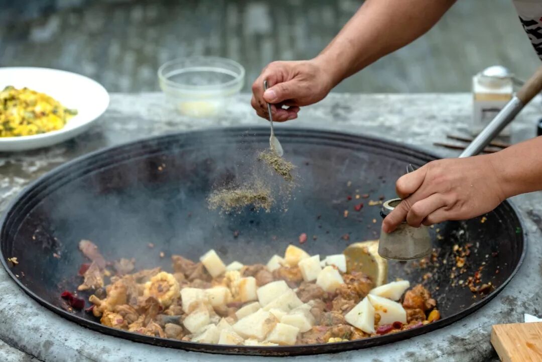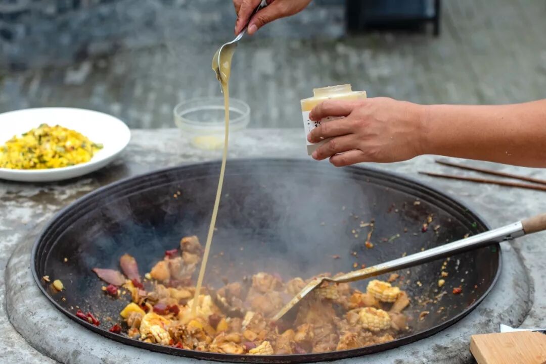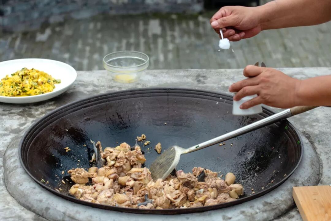 今天的大灶鸡真的太厉害了!柴火和鸡肉的搭配堪称完美,从农田里采摘的玉米很脆甜,用当地产的蜂蜜来调味,从肉里隐约透出一丝丝清甜,最经典的还是街边小店买回来的凉粉,口感像萝卜糕似的,再经过柴火的快炒,味道刚刚好。师父说,这就是大自然的馈赠,好食材的美好,就是这么的直接。就连师父都忍不住赞叹的这道菜,赶快学起来吧~