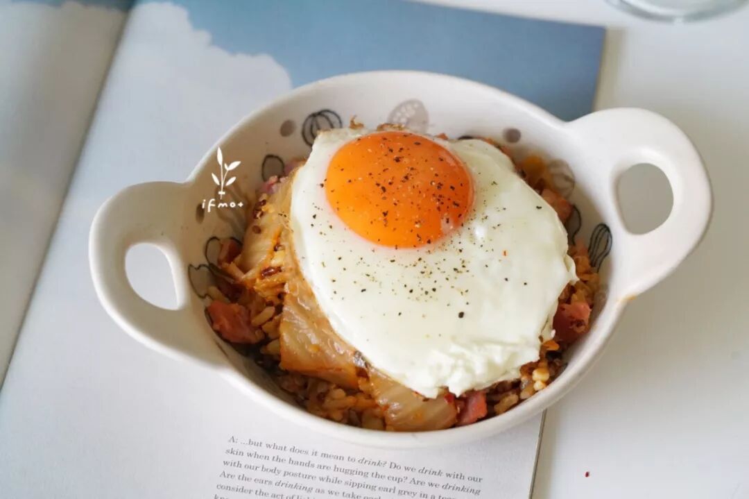 前一天晚上吃剩下的杂粮饭不要丢掉,早上锅里炒个培根泡菜加入隔夜饭炒炒就是一份炒饭啦,煎一个鸡蛋盖上面,要颜值有颜值,要风味有风味嘻嘻。