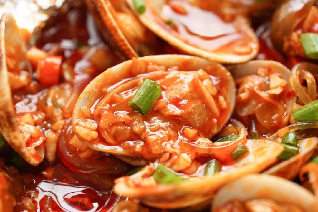 2、花甲洗净用清水没过,撒1勺盐吐沙浸泡2小时。