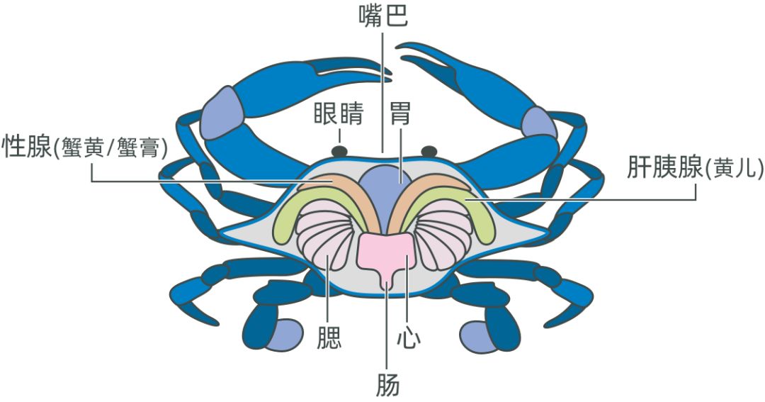 ▲ 母蟹的蟹黄,包括了它的卵巢和肝胰腺;公蟹的蟹膏,则是它的副性腺及其分泌物。