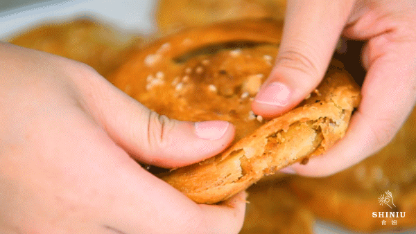 轻轻掰开,能听到“嘎吱嘎吱”的脆声,一层一层绕着圈的饼层,掰完你可能会不害臊舔手指![]()