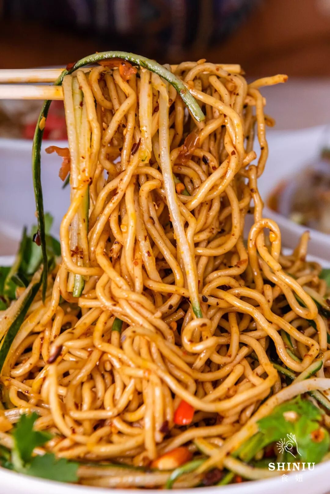 端上桌自己开吃前最好多把手,再搅拌一下。让香菜味儿彻底串进凉面里,这样每一根凉面都充斥着香菜和油辣子!