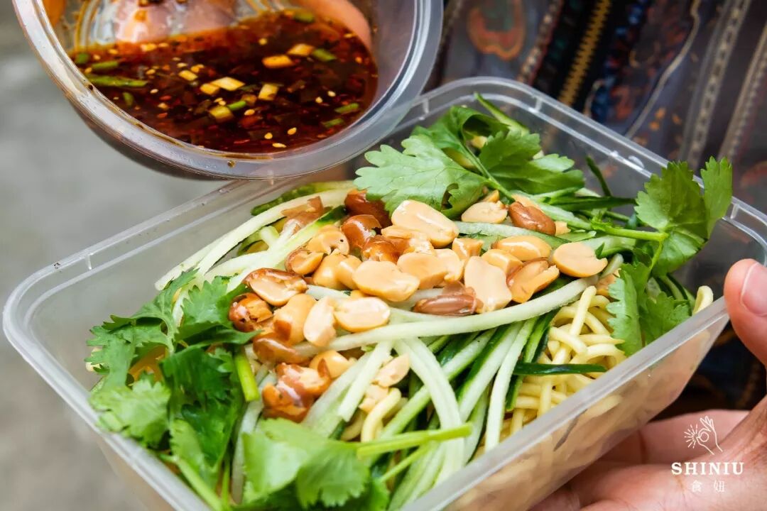 最后悄悄说声,没过瘾想打包的话,把料底和凉面分开,到家直接倒进拌匀就好啦!这样才能保持凉面的清爽度![]()