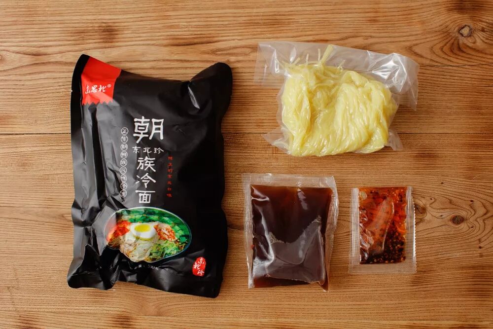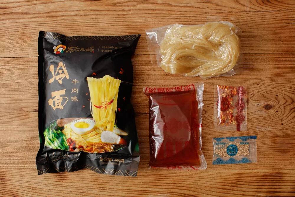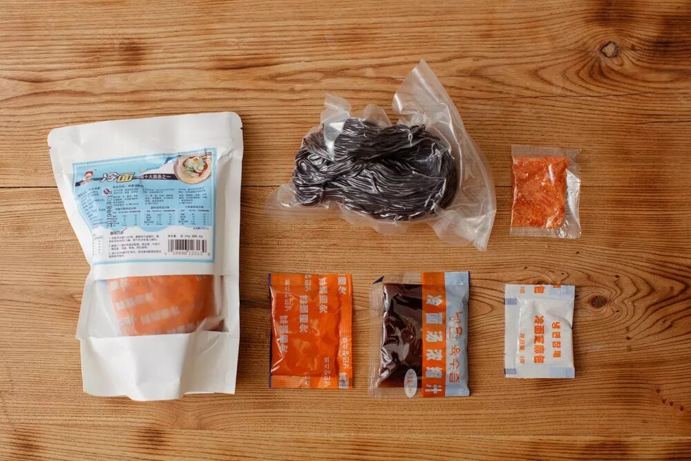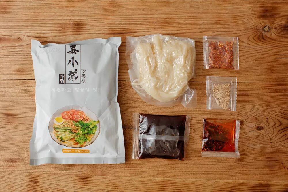 姜小弟第一个优点是可以常温储藏,调料分为4包,相比东思北多了单独的芝麻与辣椒面儿。制作流程也不是十分复杂,冷面在煮之前需要浸泡凉水揉搓开。