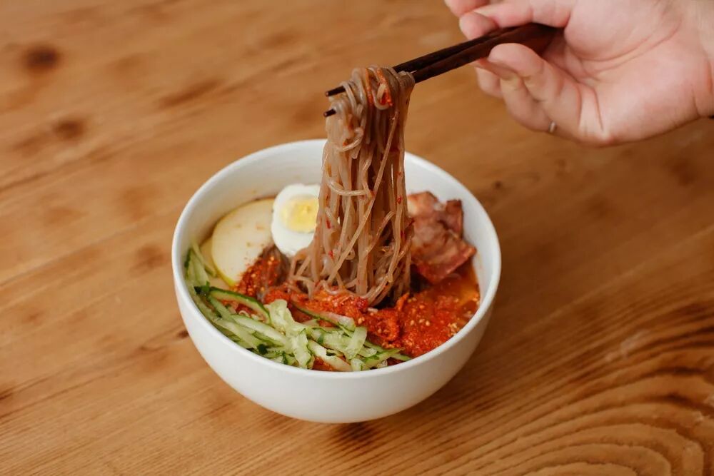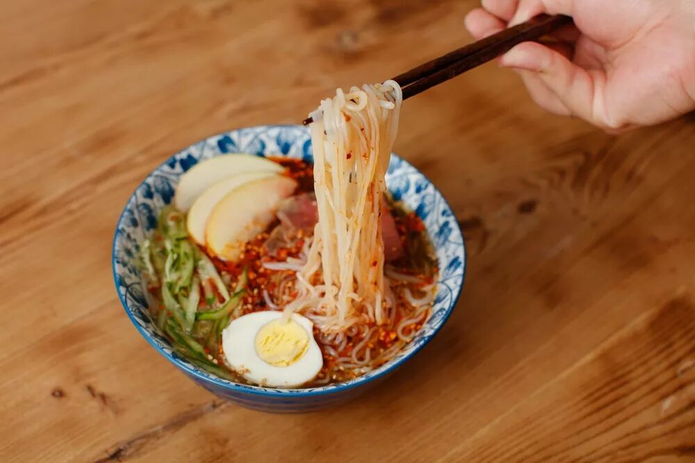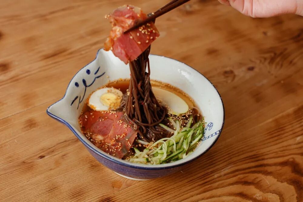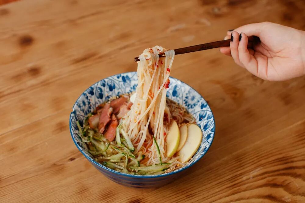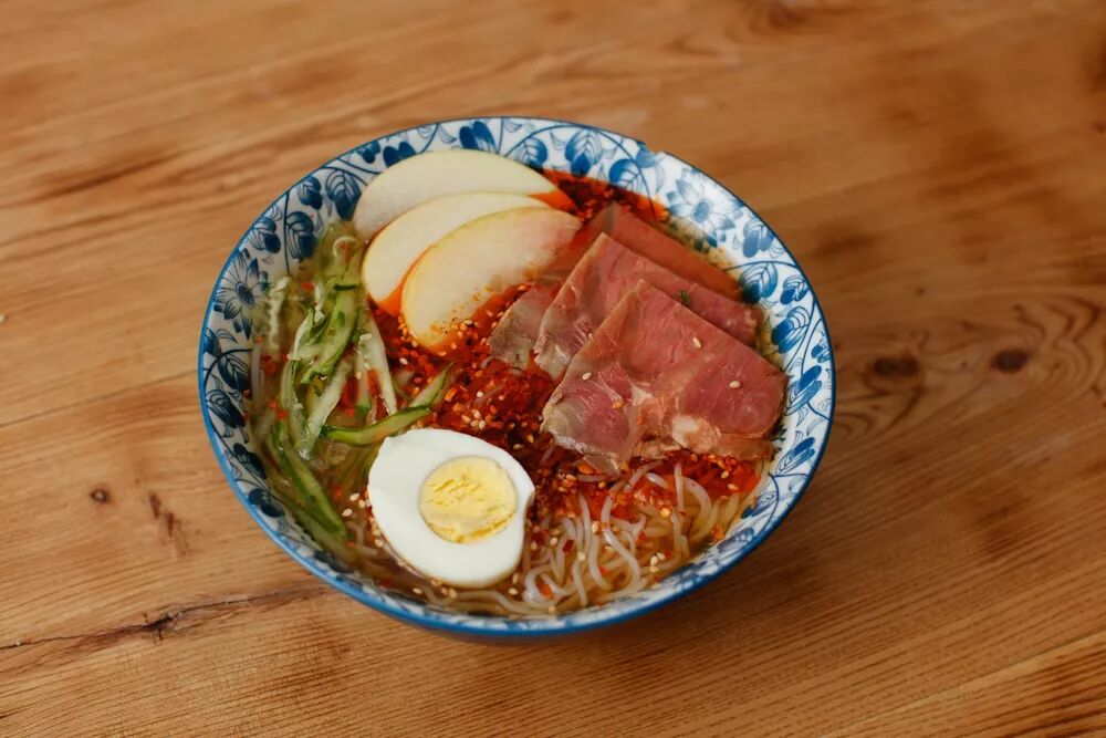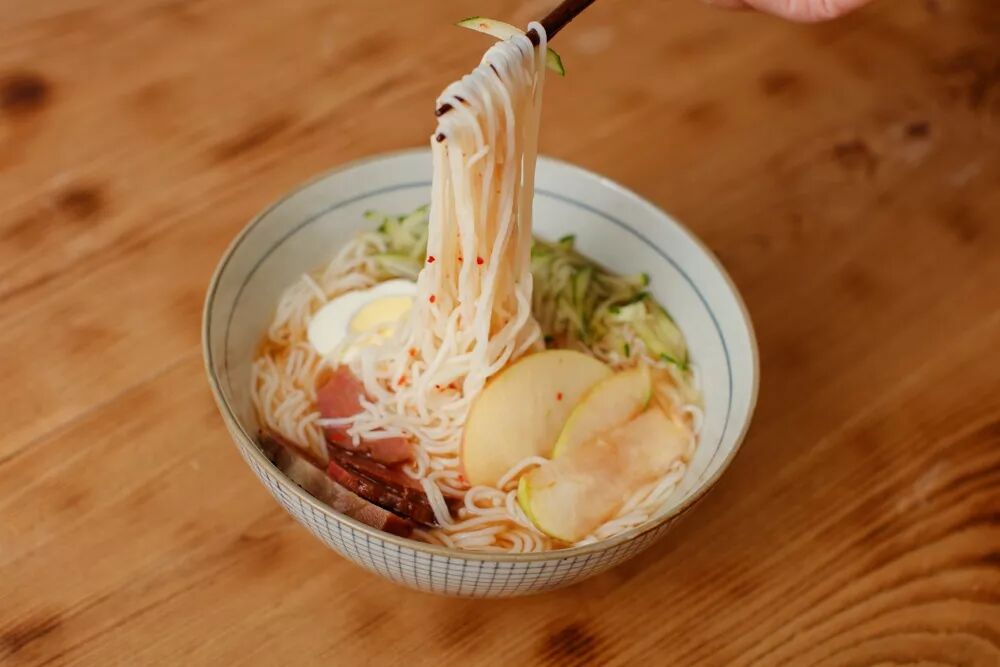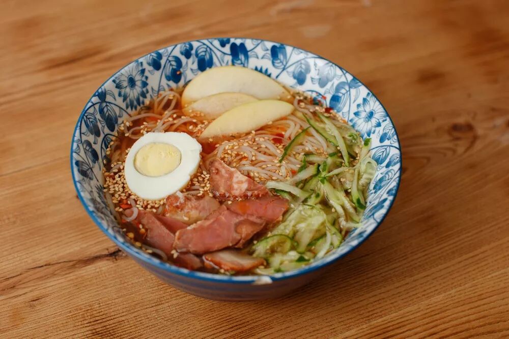 此外,冷面的吃法也有先后之分,据说朝鲜族吃冷面的顺序一般是先喝汤,再吃面,有些地方因为面条非常筋道,一般吃的时候会用剪刀来剪面。