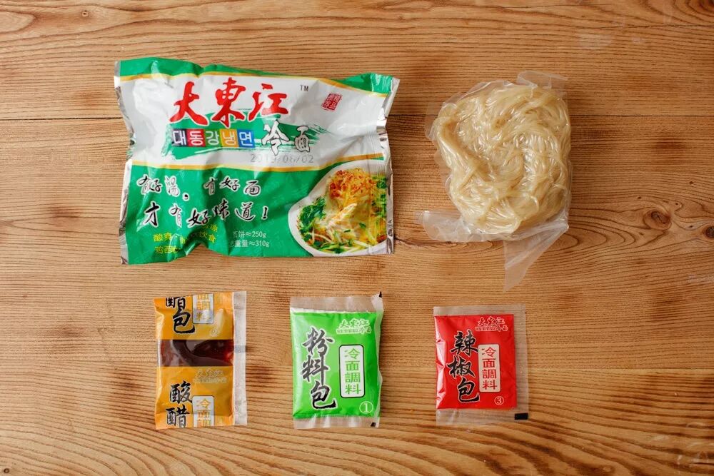 包装是本次评测中最接地气的,且没有冷面汤包,唯一的液体料包为酸醋包,调配这碗冷面汤汁你需要500ML 的矿泉水,比其他评测对象多出一倍多。