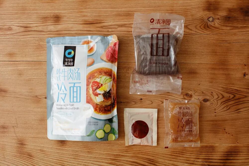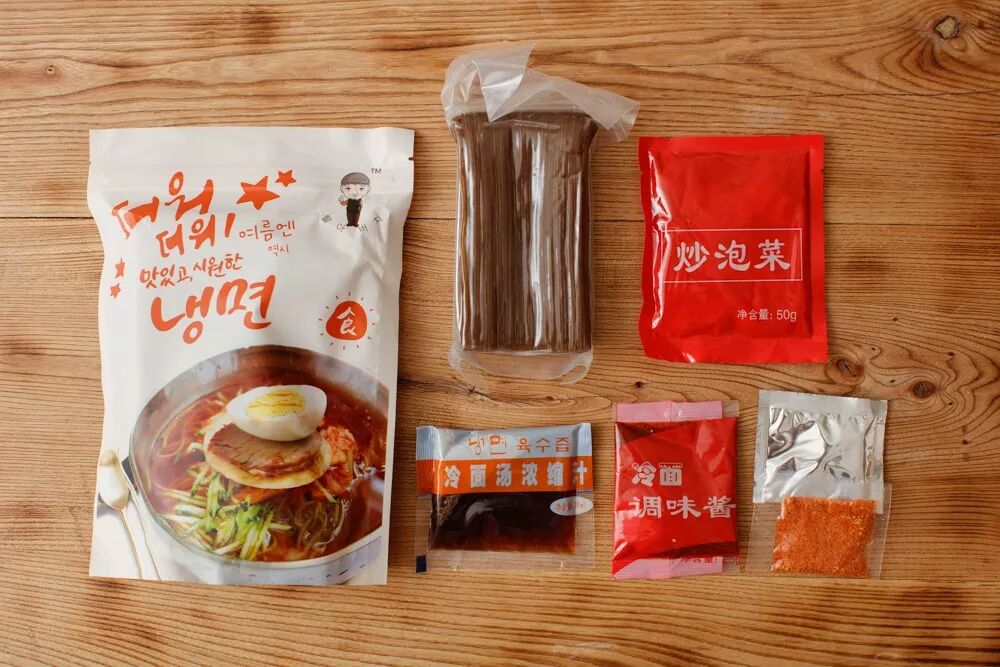 TIPS:本次选购的所有网购冷面都不含有配菜,图中配餐均是吃不胖天团自行搭配的。