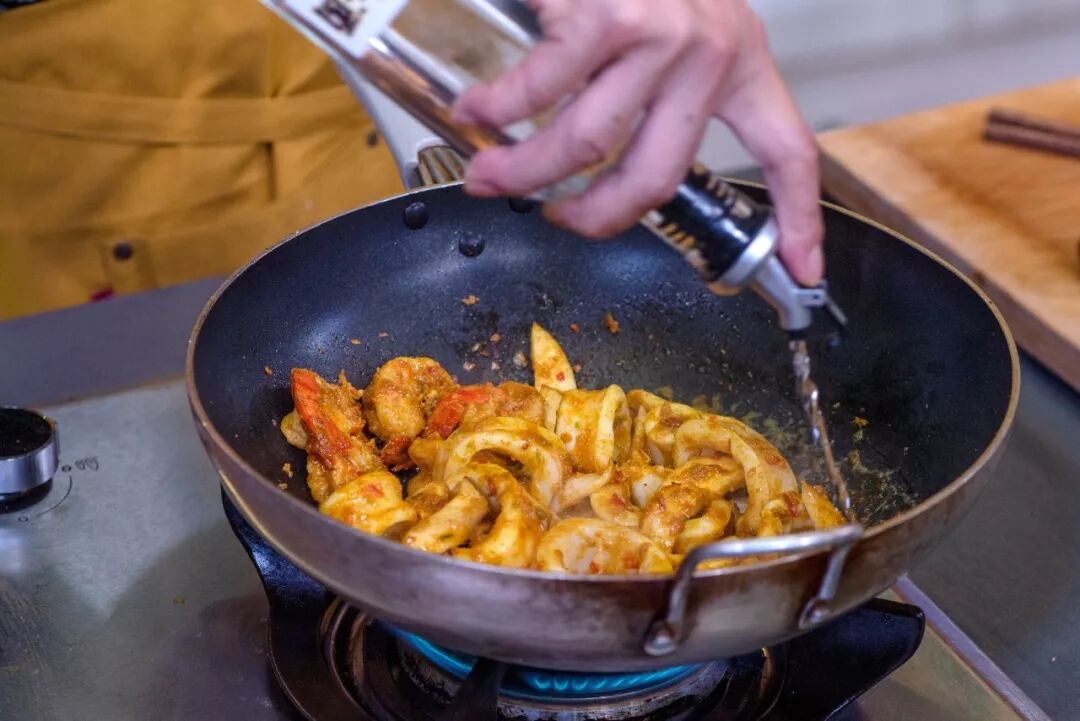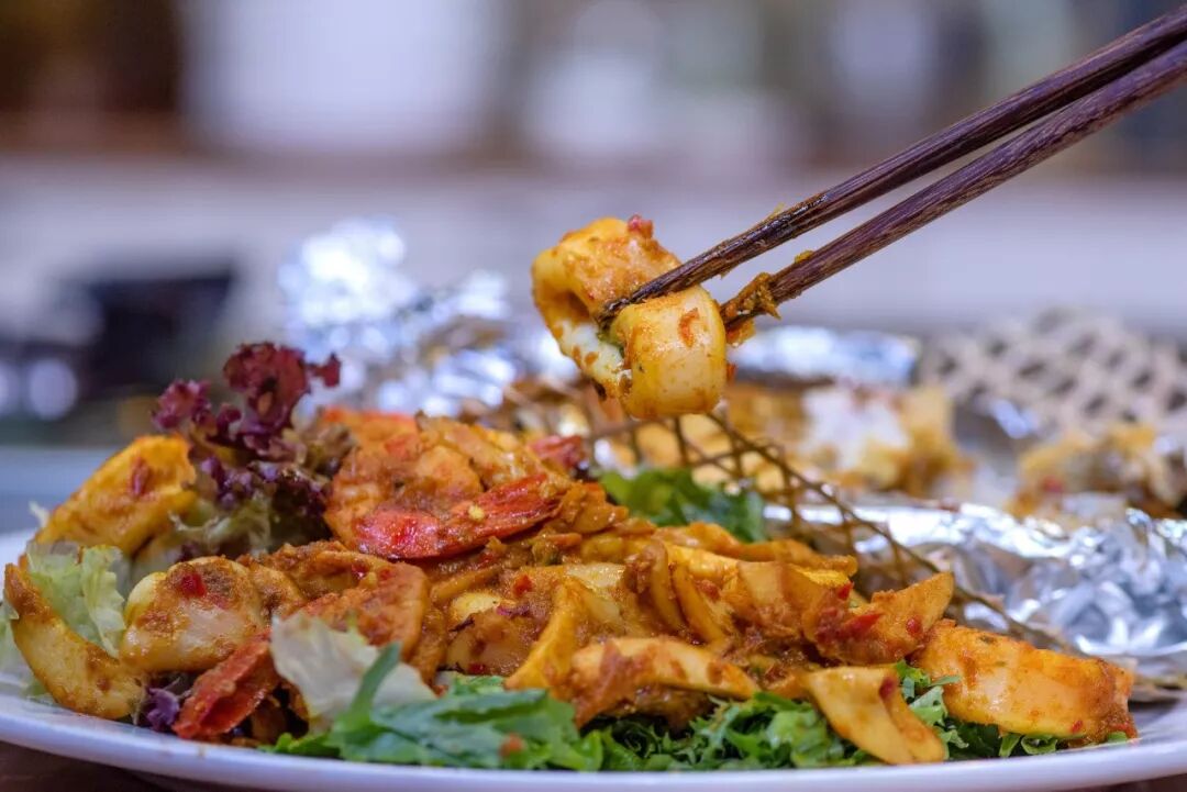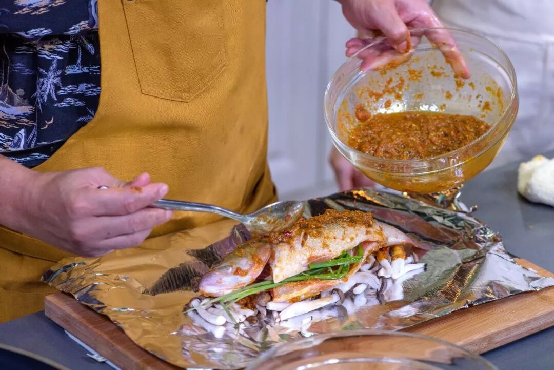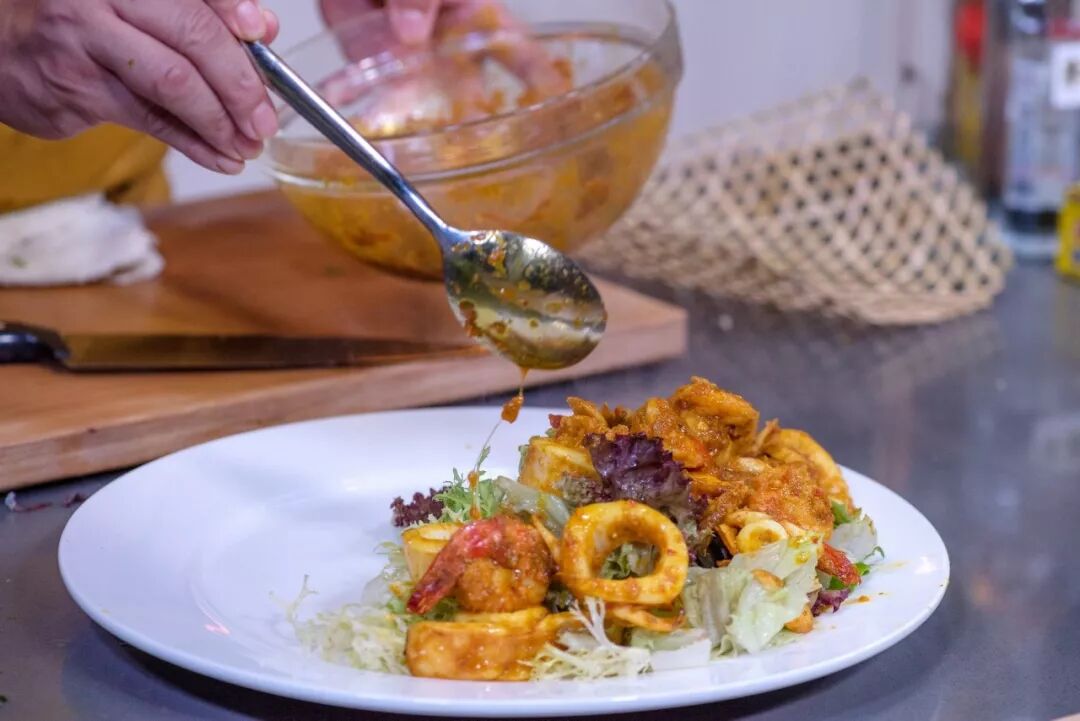 今天师父做的这道巴厘岛香料鱼,用同一种香料做出了两种不同口味,香料炒的味跟烤的味很不一样。烤出来的鱼肉柔嫩柔嫩的,吃起来很温甜,没有太多的呛辣感。炒出来的香料味道很足,带有香辣、糊辣的口感,而且食材都被香料糊着,吃起来有弹性,很紧致。一道菜两种口味,一口淡一口浓,可以接着不停地吃,我真的太喜欢了,大家可以试试看哦!