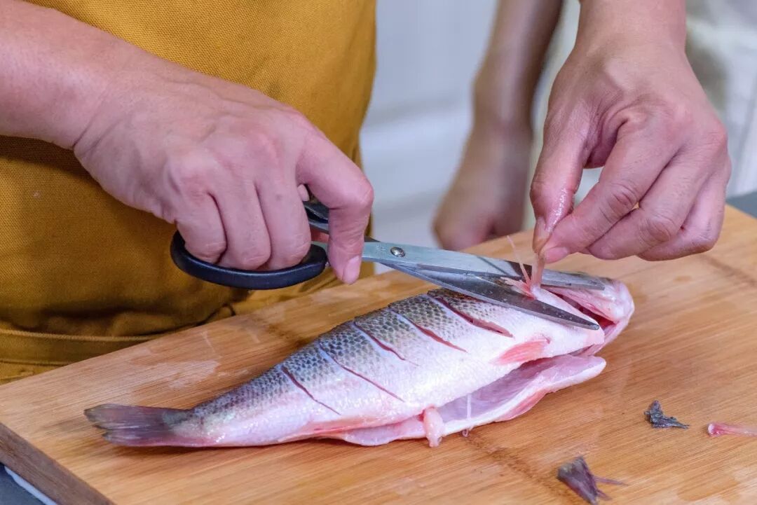 剪除鱼鳍不易伤到手,方便腌制。