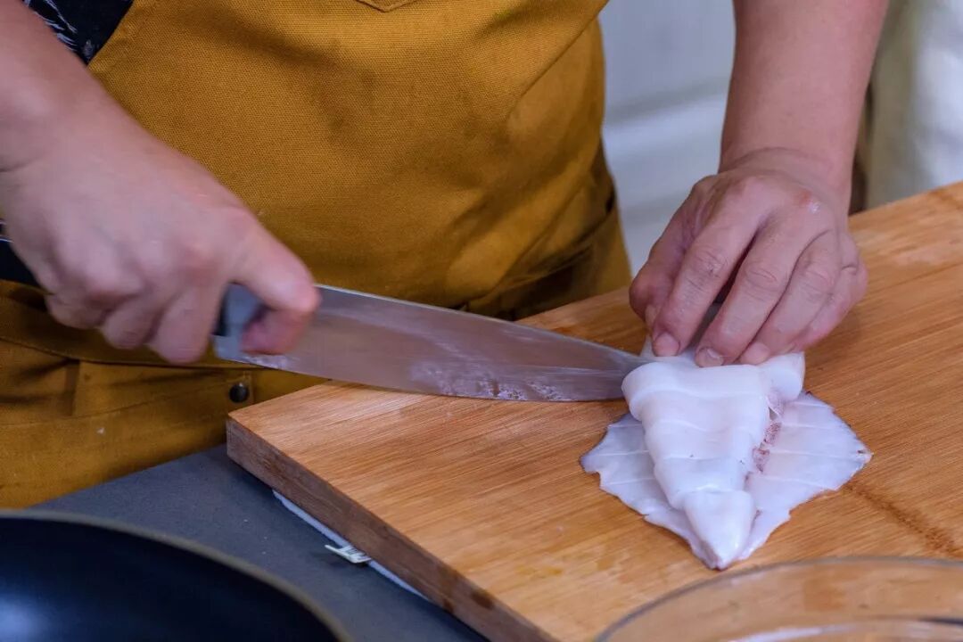 去掉中卷须和中卷外面的膜,去除腥味。