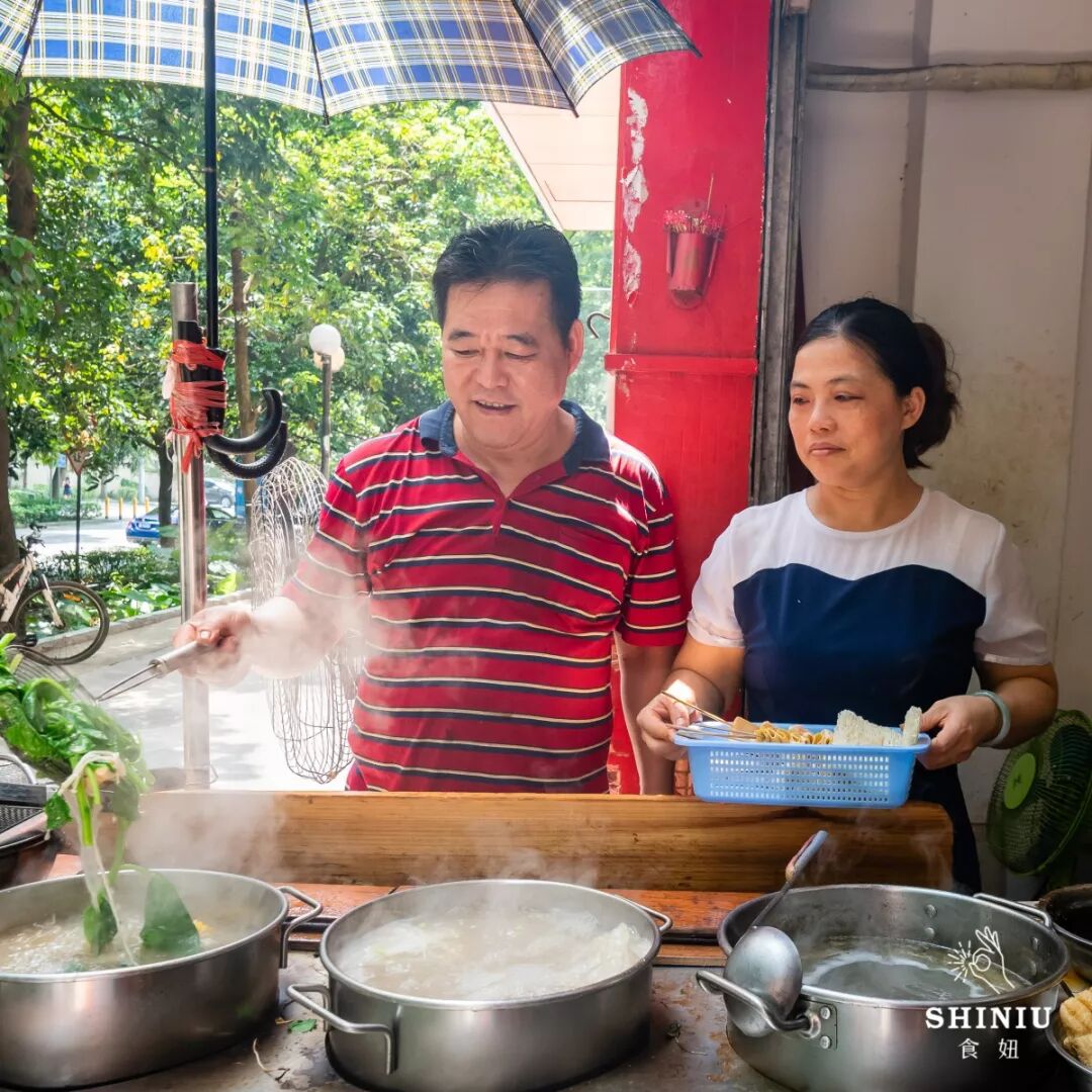 夫妻俩从04年就在白石洲摆摊卖麻辣烫了,中途歇了几年后,搬来了这里。店里只有五张桌,来晚了就只能站着等一等啰。