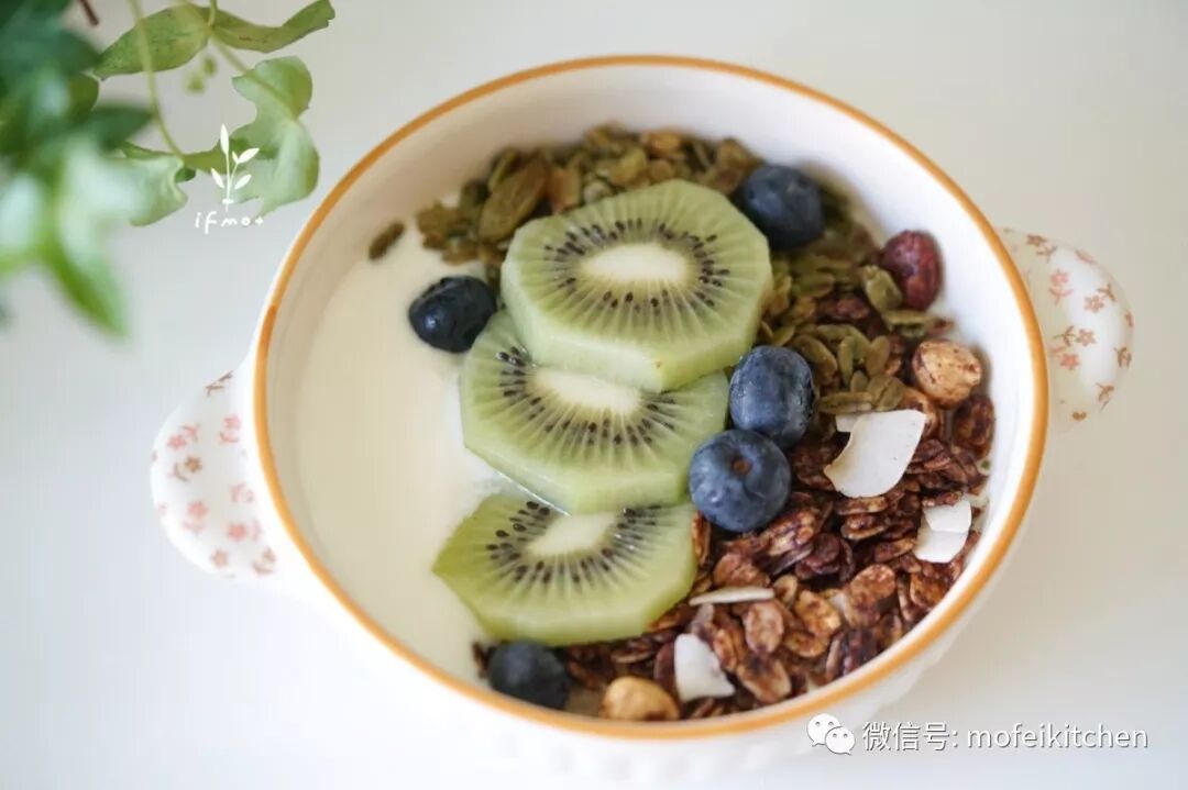我一般在出去旅行在brunch餐厅点餐的时候,常常点granola,搭配牛奶搭配酸奶都是非常好吃。我的早餐基本都是老三样,一份主食,一杯咖啡,心情好来杯酸奶配麦片或者水果。