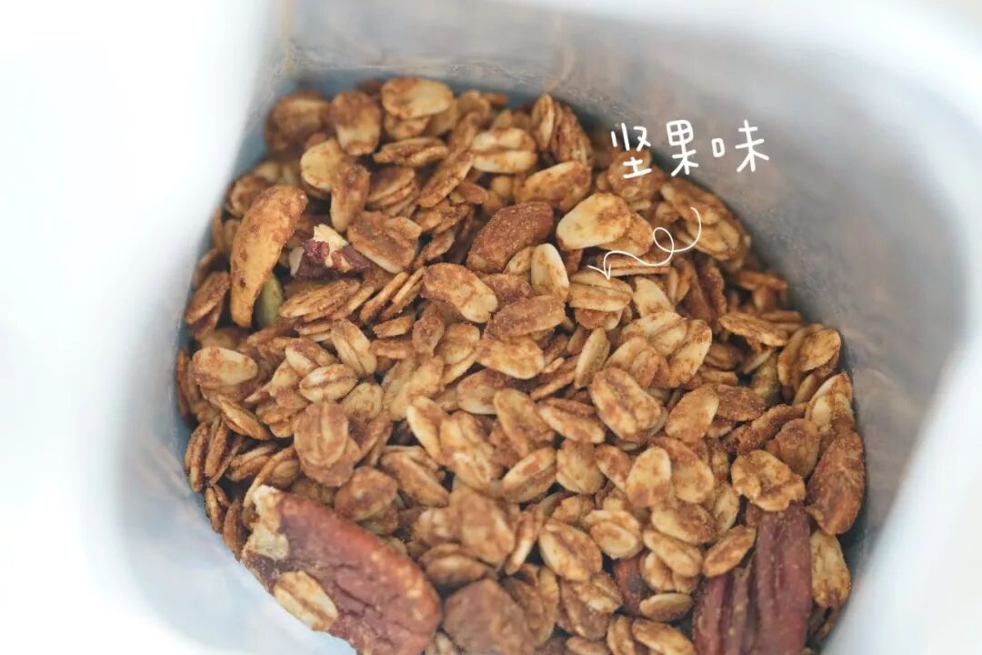 市面上的烤燕麦片,和我餐厅吃到的一样,大部分在烤制过程中添加了很多消费者无法辨认的添加,比如白砂糖,比如为了延长保质期的食品添加剂(合法的),比如反式脂肪酸等。