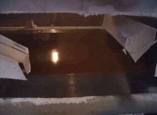 在传送带的尽头,结冰的咖啡会被粉碎。但被冻成冰块的咖啡中仍然含有水分,要做成速溶咖啡需要清除这些水分,但如果让咖啡冰融化又会损失香气。怎么能把水分清除但又不让咖啡冰块融化呢?解决方法是,把咖啡冰块们装入托盘,堆积起来,然后在低压的管道中待5个小时。在管道真空环境中加热到60度,压力下水份会直接从固体升华成气体。