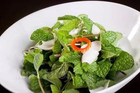 见惯了薄荷在街边的大小冷饮店出场,偶尔在饭桌上看到它正儿八经的作为一道菜现身,很多人还不习惯,当它是香菜、小葱一类的作料。其实,薄荷入菜比它作为饮料配料的时间可早得多了。