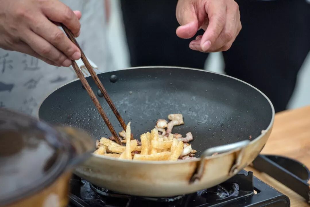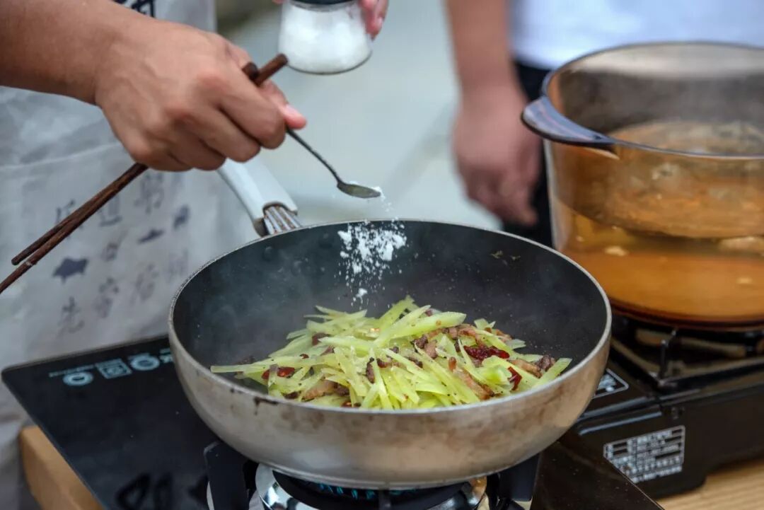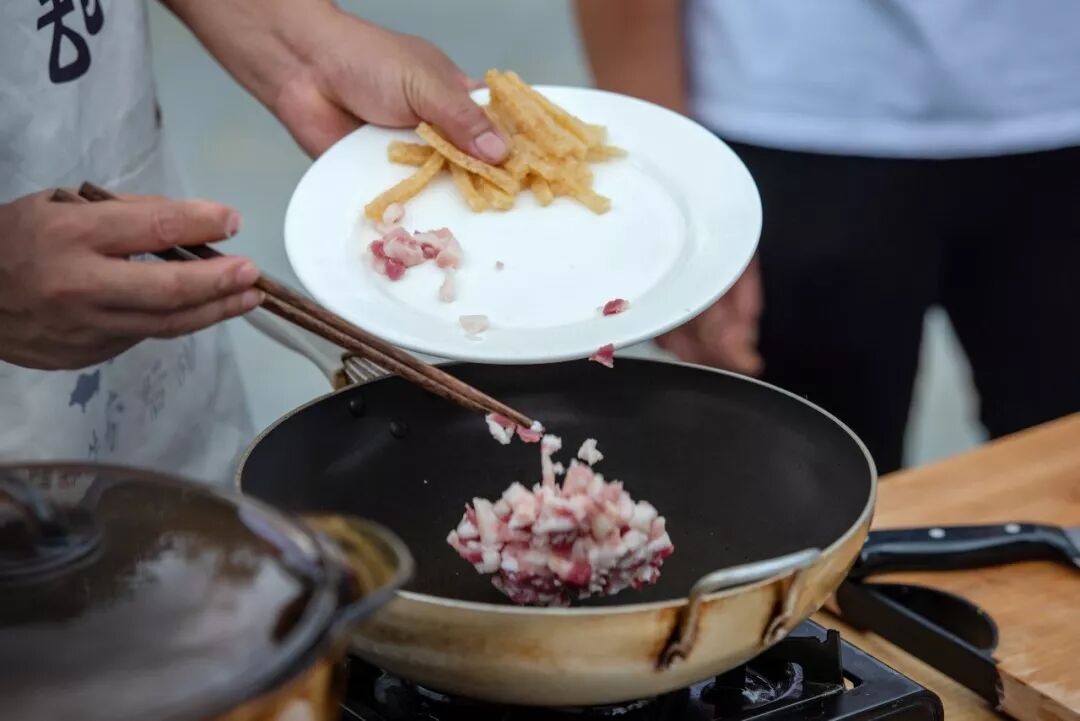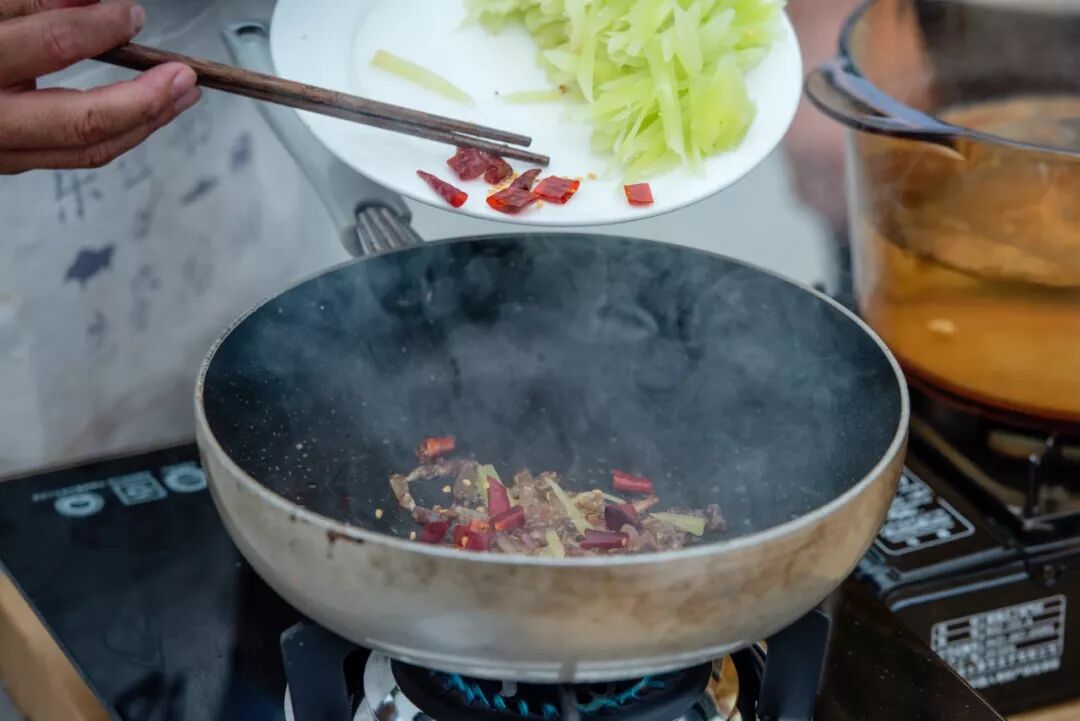 师父今天炒的蔬菜食材特别的简单,用当地熏制的腊肉和新鲜采摘的莴笋随便一炒,就将肉香和菜香完美的结合在了一起,再撒上一点干辣椒,微微的辣味不仅能解腻,还可以给这道菜增加一些的层次感,赶快动手做起来吧!