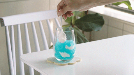 看着很好看吧?把蓝天白云装入杯中,然后一口喝掉,心情也会变得明朗~