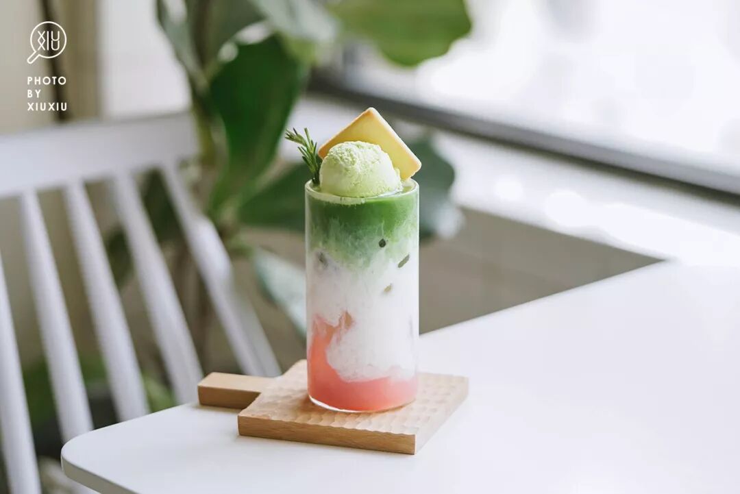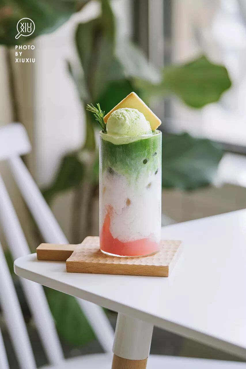 如果你和咻咻一样,想要加冰淇淋球,那冰块一定要多,不然球球会沉底哦~最后插一片饼干,就是杯合格的下午茶甜品啦~