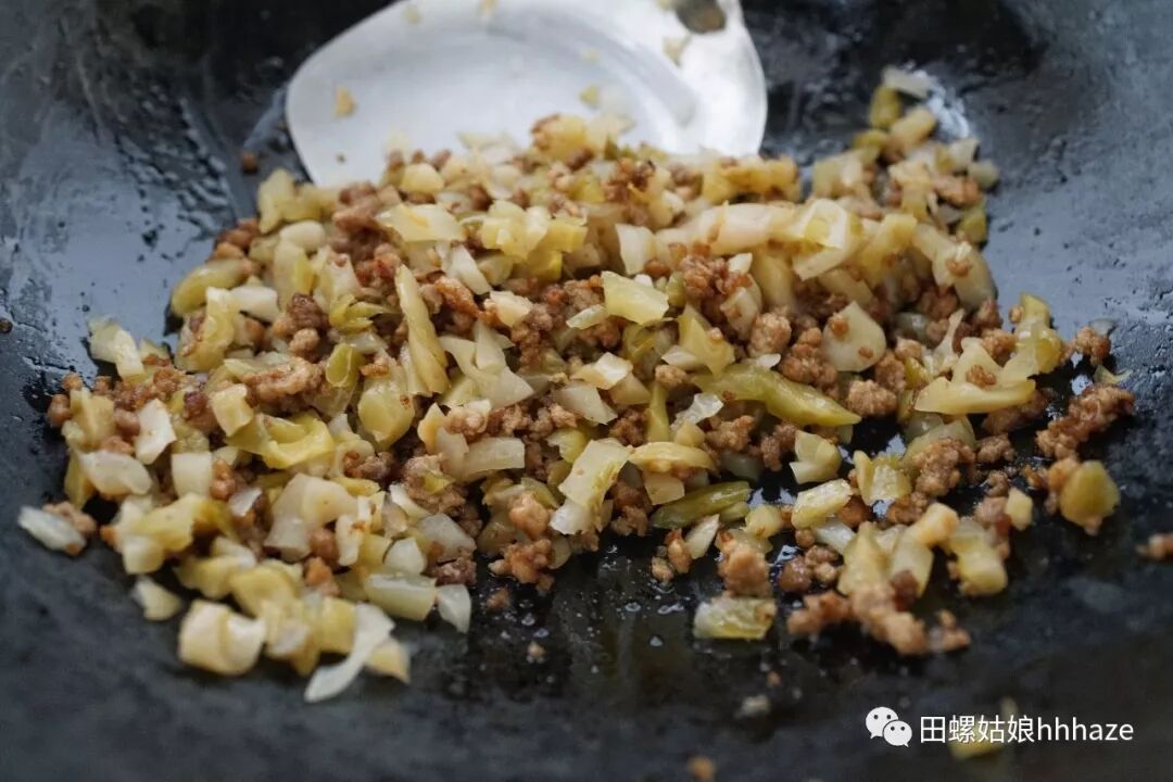榨菜本身偏咸,切丁之后要用清水稍微浸泡一下,再沥干使用。
