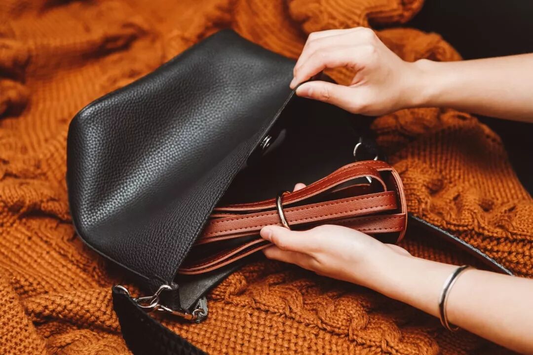 古铜色的皮面配上金色的金属圈,扬起了质感满满的复古风——刚好你穿了波西米亚风格的长裙和复古柔软的小皮鞋,酒袋垂在腿边,随着你的步子来回摆动,ins街拍的既视感呼之欲出。